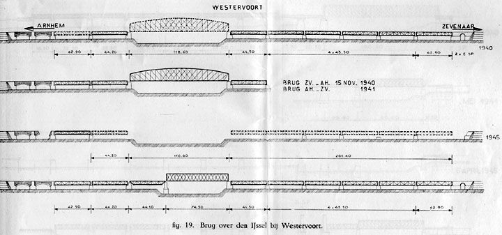 Grafisch overzicht van de spoorbruggen over de IJssel bij Westervoort 1941 - 1945