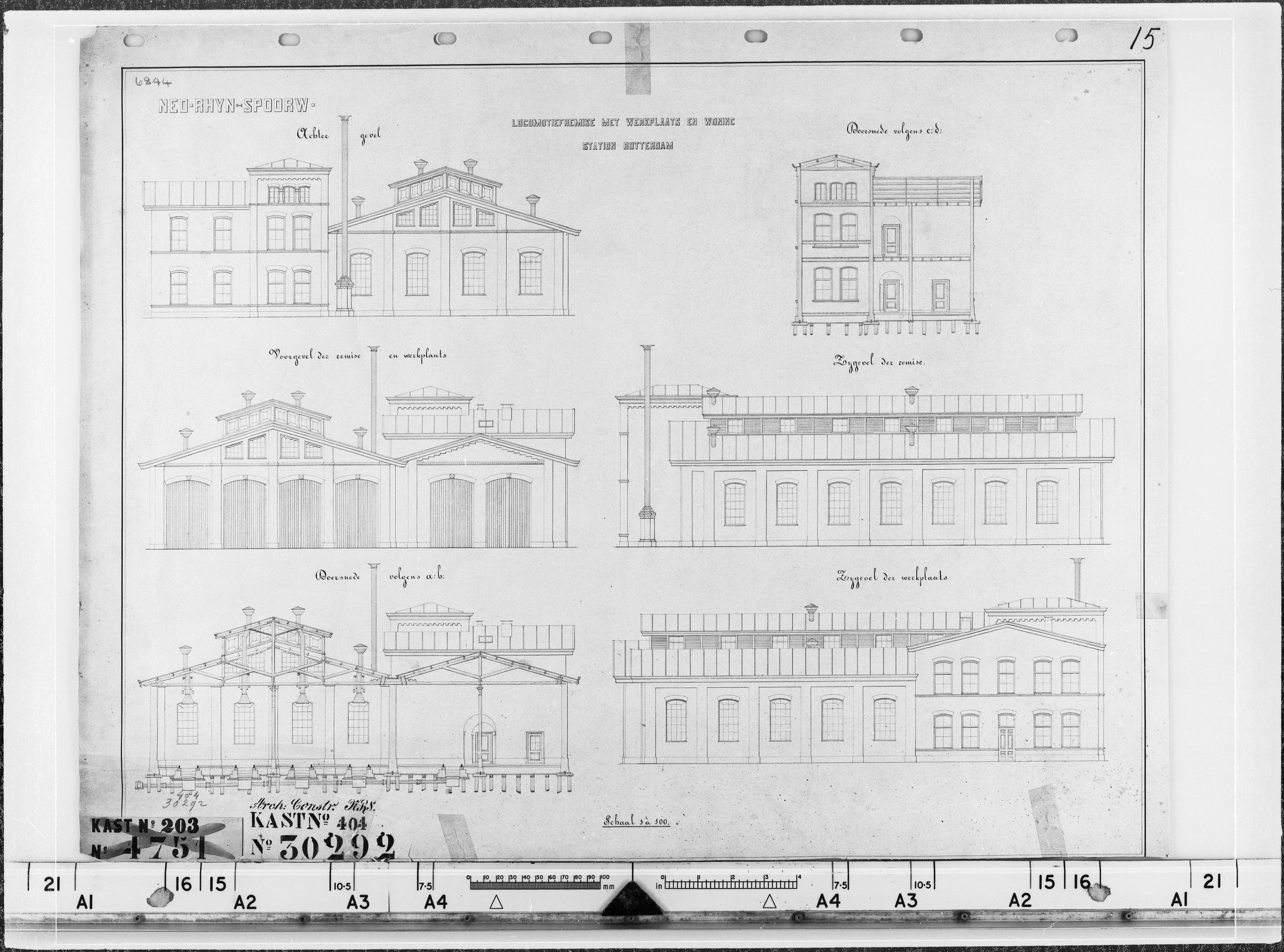 Plattegronden van het locomotievendepot van station Rotterdam Maas.