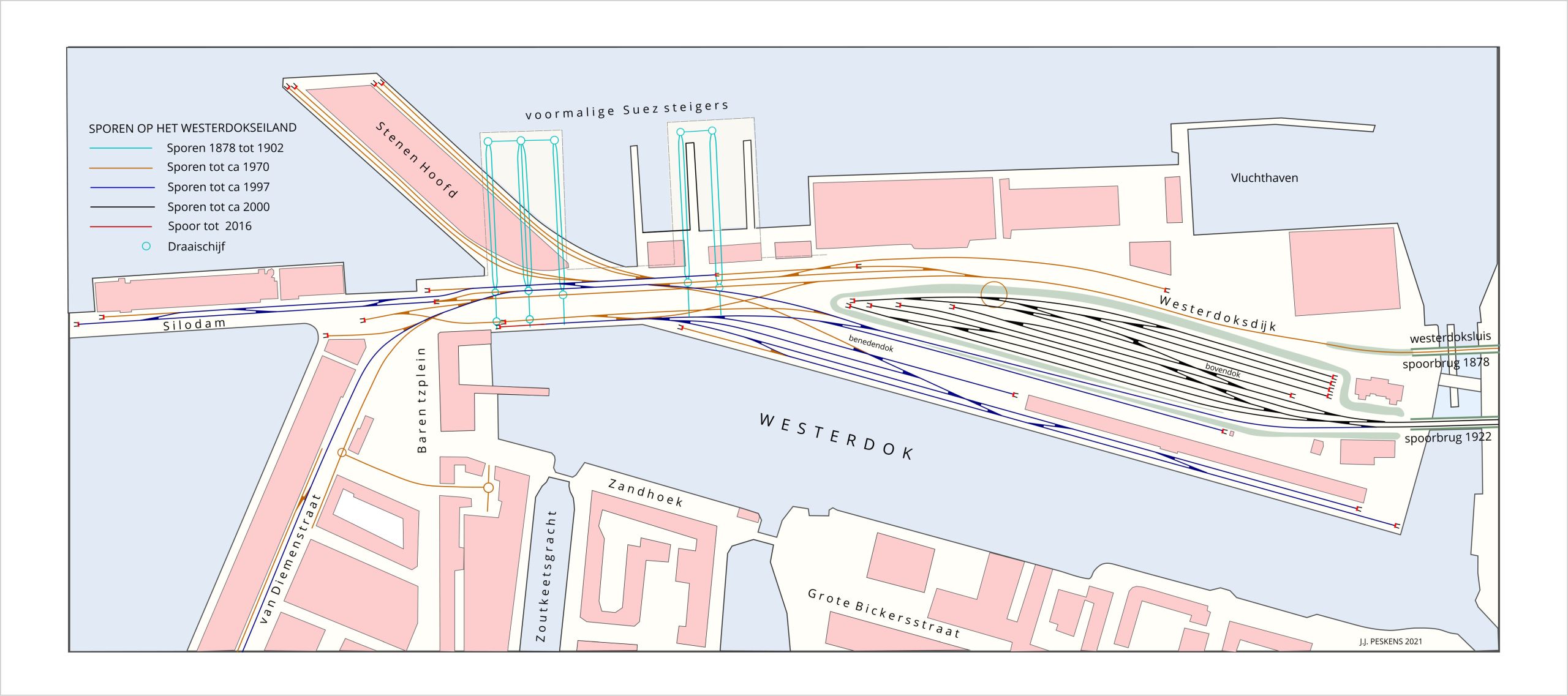 Overzicht van de sporen die gelegen hebben op het Westerdokseiland